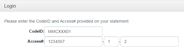 The access# is located on your statement. Enter each number between the dash ("-") symbol into each box.